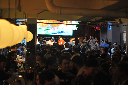 4. Nu cred ca e o competitie a companiilor ai caror angajati participa. Inca e un concurs fun, unde lumea din public e mult mai relaxata si mai chill decat la orice alt concurs de cafea. Ca sa iti faci o idee cum a fost in Dublin, am atasat o imagine. Era plin-plin, nu se mai putea intra (intrare cu bilet), muzica tare, se dansa, se tipa, o atmosfera foarte electrizanta. Locul unde concurentii performau, era extrem de restrans, practic se atingeau foarte des, si cu toate astea pareau ca se distreaza si ei.