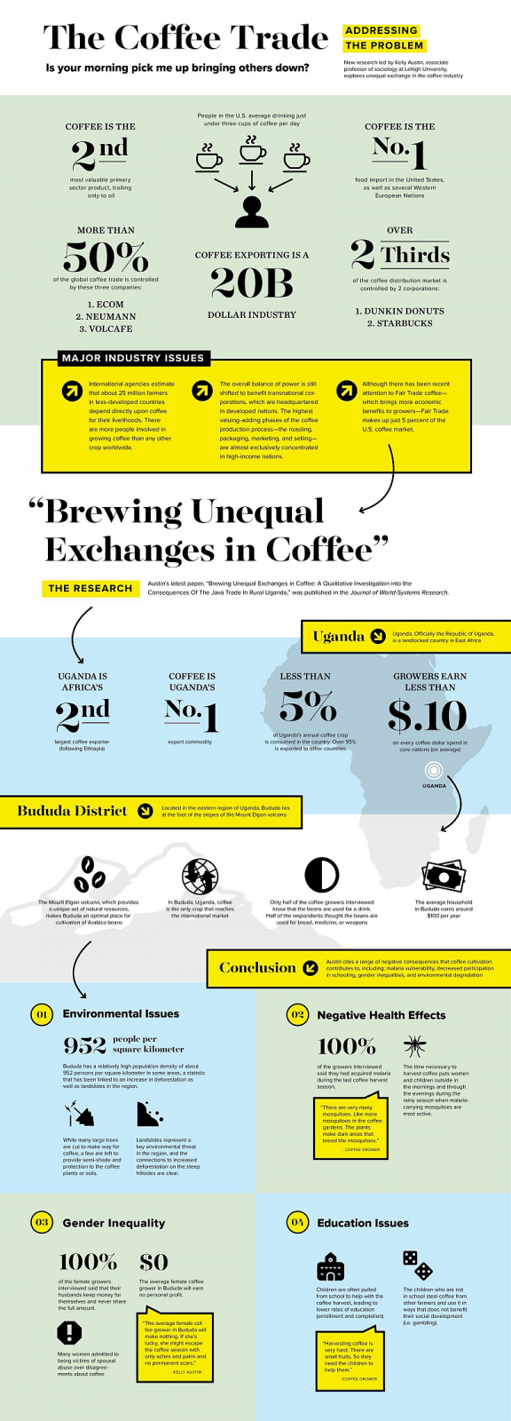 Foarte multi barista isi doresc sa ajunga (si sa ramana pe o perioada mai mica sau mai mare) intr-o tara producatoare de cafea. Dupa ce vor citi acest reportaj din Uganda, cred ca se vor razgandi. Informatia ca 100% din cei intervievati au avut malarie, e teribila. Pentru ca in acel articol exista un infografic care e la o rezolutie mica, apasati pe fotografia alaturata sa vedeti originalul