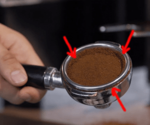 Iar tamperul ala are rezultatele din imaginea alaturata: o mare suprafata a cafelei nu este compactata, ceea ce va duce la o extractie defectuasa. Si ca tehnica dar si in gust. Si se vede cu ochiul liber ca a fost mult prea multa cafea in filtru si ca macinatura este de departe de a fi la o granulatie optima. Si nu cred ca il locurile alea tari la care se face referire in titlu, se observa chestiile astea. Sau poate ne raportam la locatii diferite si atunci toata aceasta discutie nu isi are rostul. Neahhhhhh!