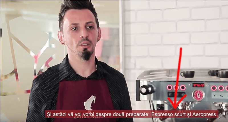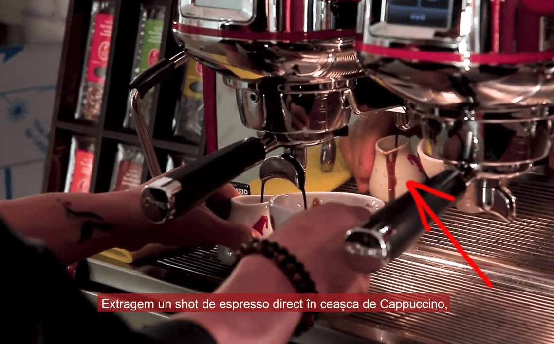 In orice concurs, cu situatia din poza alaturata, se pierdeau atatea puncte incat te puteai gandi ca totul a fost in zadar. In toate cele 3 filme, se vorbeste de calibrarea echipamentului pentru cafeaua folosita. Ei bine, extractia aia care incepe la 1 secunda dupa apasarea butonului, atat de rapida incat nu prea e timp de pus cestile sub portfiltru, numai calibrare nu imi pare. In cana din stanga, a ajuns cu mult mai putina cafea decat in cea din dreapta. Veti spune “si ce daca! ca a folosit-o doar pe cea din dreapta la prepararea bauturii!”. Ei bine conteaza. Ca daca tot vorbim de echipamente si calibrari si experienta, ar trebui sa fie totul perfect. Mai recititi o data punctul 1 daca nu a fost clar. Iar chestiile astea se intampla intr-un spatiu controlat, unde se puteau filma 10 extractii, calibrate, curate si produsele rezultate sa fie atat de bune incat sa te duci in Auchan sa iti cumperi o punga de cafea.
