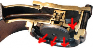 Mai exista o neconcordanta in toate cele 3 prezentari: “dam flush pentru a curata garnitura”. In poza alaturata, vedeti cam care este constructia unui grup de espressor. Sageata cea mai de sus indica locul unde este garnitura. Cele 3 sageti in jos indica locul pe unde iese apa din grup. NICIODATA, apa care curge prin acel loc (fara interventia unui barist care sa foloseasca o perie), nu ajunge de una singura la garnitura !!! Garnitura este cu mult mai sus pozitionata decat locul pe unde iese apa! Altele sunt motivele pentru care se ‘da flush’, caracteristice fiecarui tip de espressor, dar in niciun caz, curatarea garniturii.